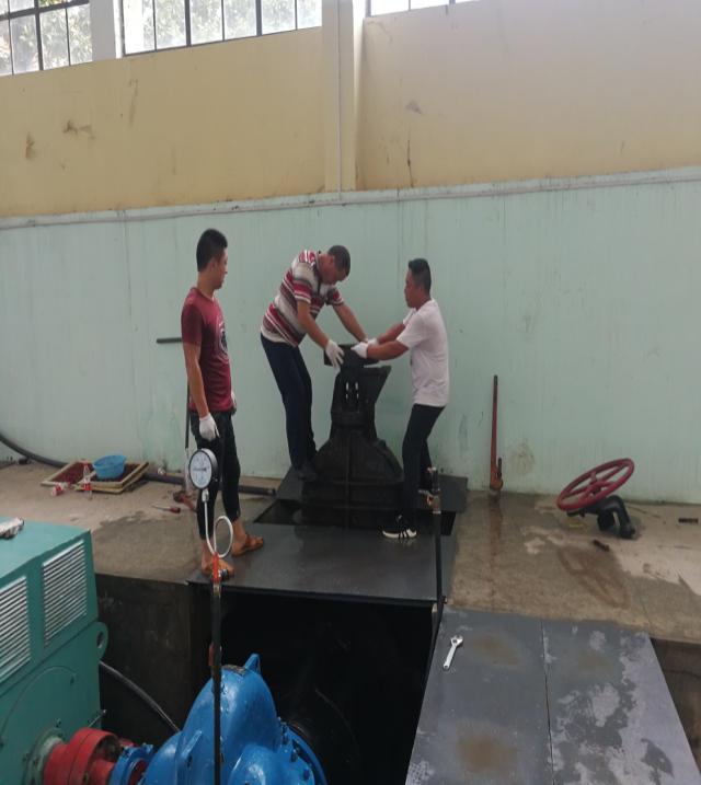 即便時(shí)至夜晚,泵房的溫度也讓人感到悶熱難耐,大汗淋漓,但維修師傅們?nèi)徊活欉@些,聚精會(huì)神地專注于手上的工作,齊心協(xié)力,連續(xù)奮戰(zhàn),終于在第二天凌晨三點(diǎn)左右維修完畢。待一切設(shè)備正常運(yùn)行后,已是凌晨5點(diǎn)了,天已蒙蒙亮,但大家并不感到疲憊,而是有一種搶修勝利后的喜悅從心底油然而生,因?yàn)榇蠹业呐Ω冻?,確保了襄城居民的正常用水,辛苦也值了!
