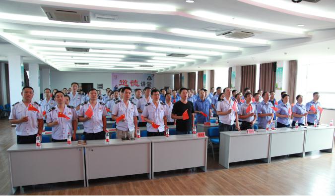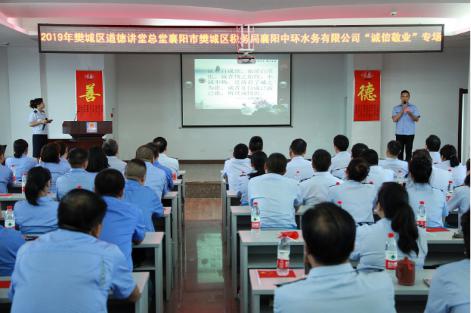 7月25日下午,根據(jù)襄陽市委宣傳部、市文明辦的要求,襄陽中環(huán)水務(wù)有限公司與樊城稅務(wù)局聯(lián)合舉辦了一期主題為“誠信敬業(yè)”的道德講堂活動。襄陽中環(huán)公司紀委書記、副總經(jīng)理焦為民;財務(wù)總監(jiān)王平;工會主席徐玲,以及公司各基層單位、機關(guān)部室代表參加了活動。