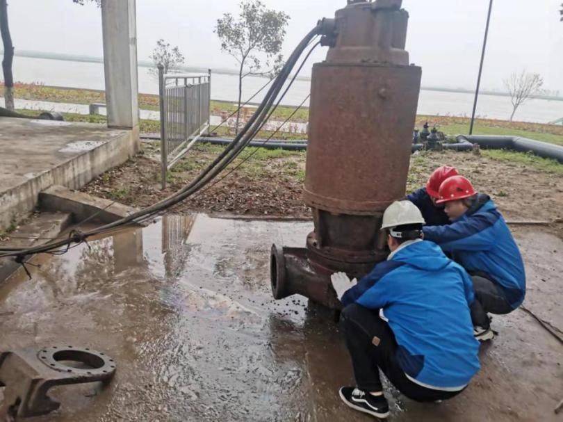 4月6日,宜城天河供水公司水廠按崗位標(biāo)準(zhǔn)化管理要求對取水車間南側(cè)沉井潛泵進(jìn)行了月度檢查維護,檢查時發(fā)現(xiàn)4#潛泵在運行時會偶爾發(fā)出‘叮咚’撞擊聲,再觀察4#取水潛泵控制柜電流、電壓、流量正常后,機修人員初步判斷4#潛泵進(jìn)水口周圍可能有異物。
