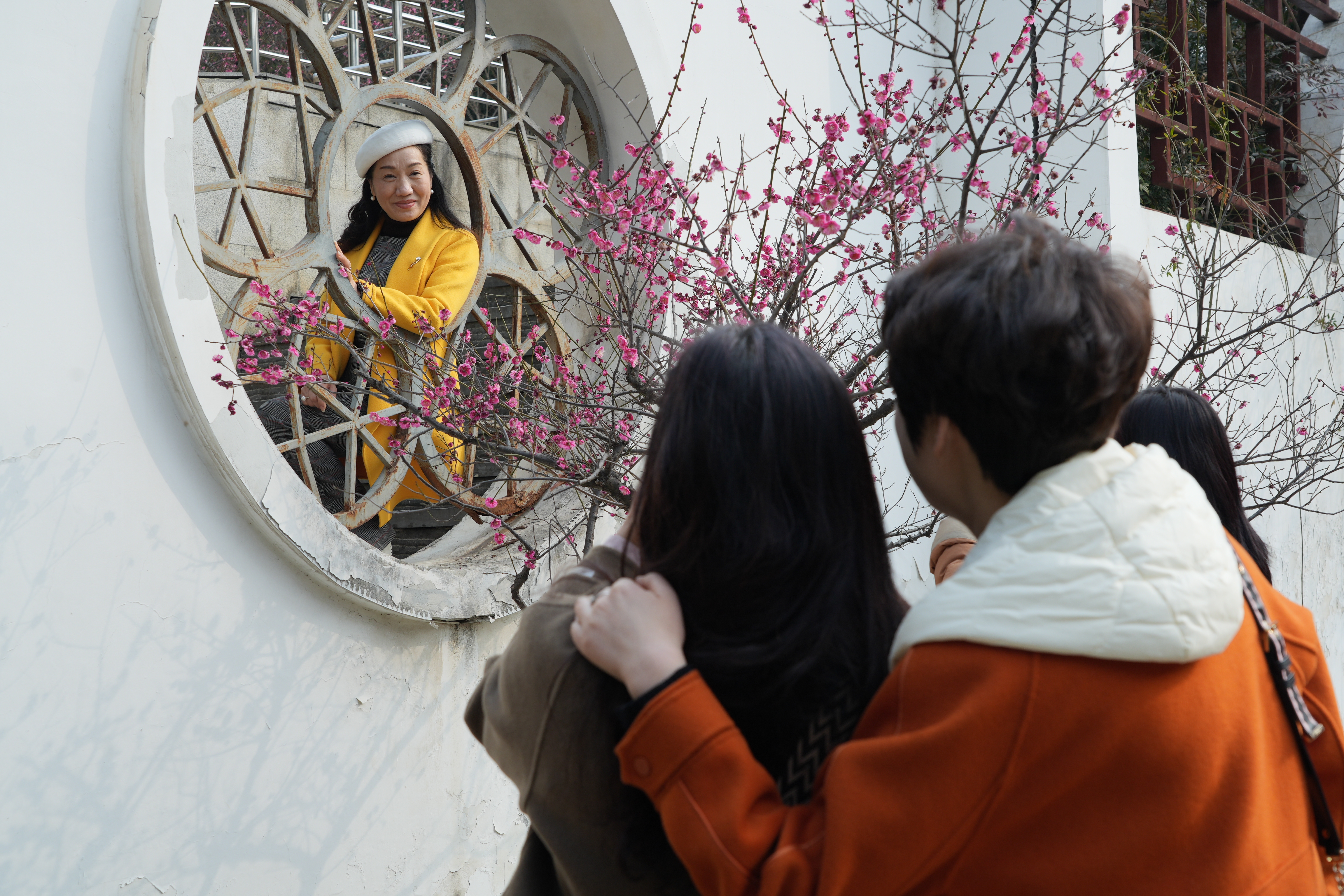 在萬山梅園,紅梅綻放,青梅花開。大家時而手拉手肩并肩,游走在花徑小路上,徜徉在花海林中;時而細嗅芬芳,感受回春大地的溫暖氣息;時而駐足拍照,找尋“最佳C位”,與同伴留下美麗倩影。
